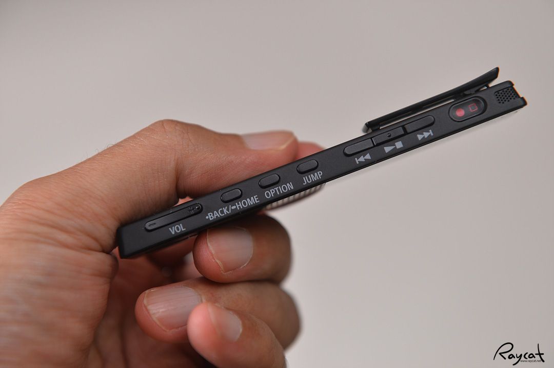 전원을 켜지 않고 녹음 버튼을 누르면 바로 녹음이 시작되며 조작 버튼은 모두 측면에 있으며 조작법은 아주 간단합니다.