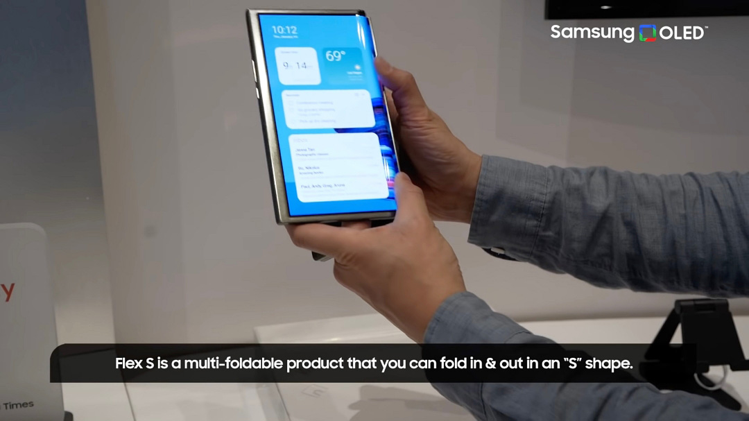기존 갤럭시 Z 시리즈의 경우 화면을 반으로 접어서 사용했지만 이번 CES에서 공개된 Flex S 시리즈는 3단으로 접히며 태블릿에도 적용되었음을 확인할 수 있습니다.