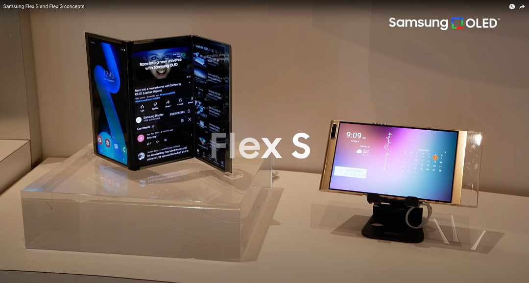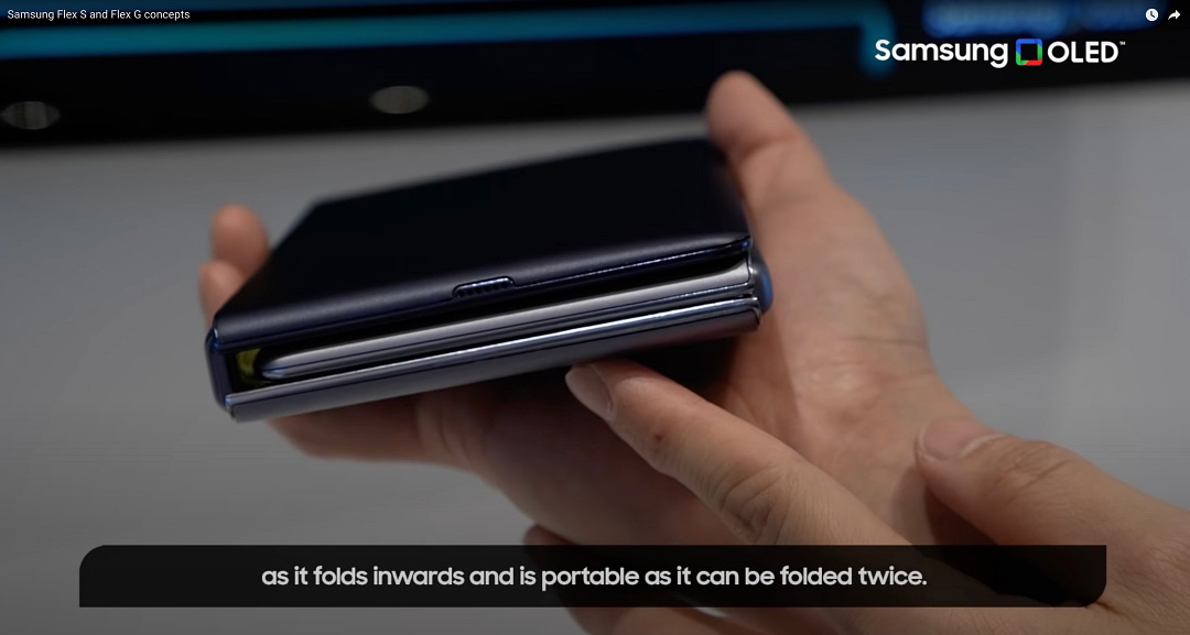 3단 폴더블폰이 될 플렉스 S와 플렉스 G는 현재 시제품으로 플렉스 S의 경우 외부 디스플레이가 따로 없지만 접었을 때 한쪽이 외부로 향하기에 일반적인 형태의 스마트폰처럼 사용할 수 있습니다.