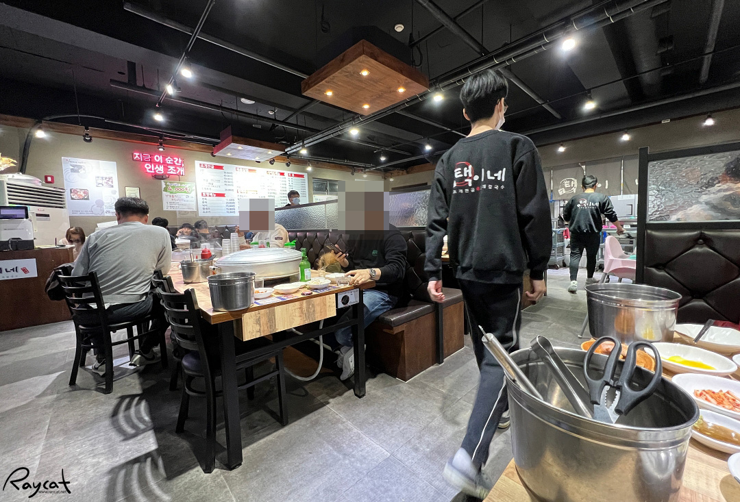 내부는 일반 식당이야 구조가 다 비슷하지만 요즘 코로나 때문에 테이블에 모두 투명 칸막이가 있죠.
