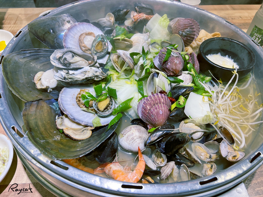 뜨거운 국물에 조개와 함께 종류별로 다양한 해산물 그리고 가볍게 한잔 하기도 참 좋은 메뉴죠.