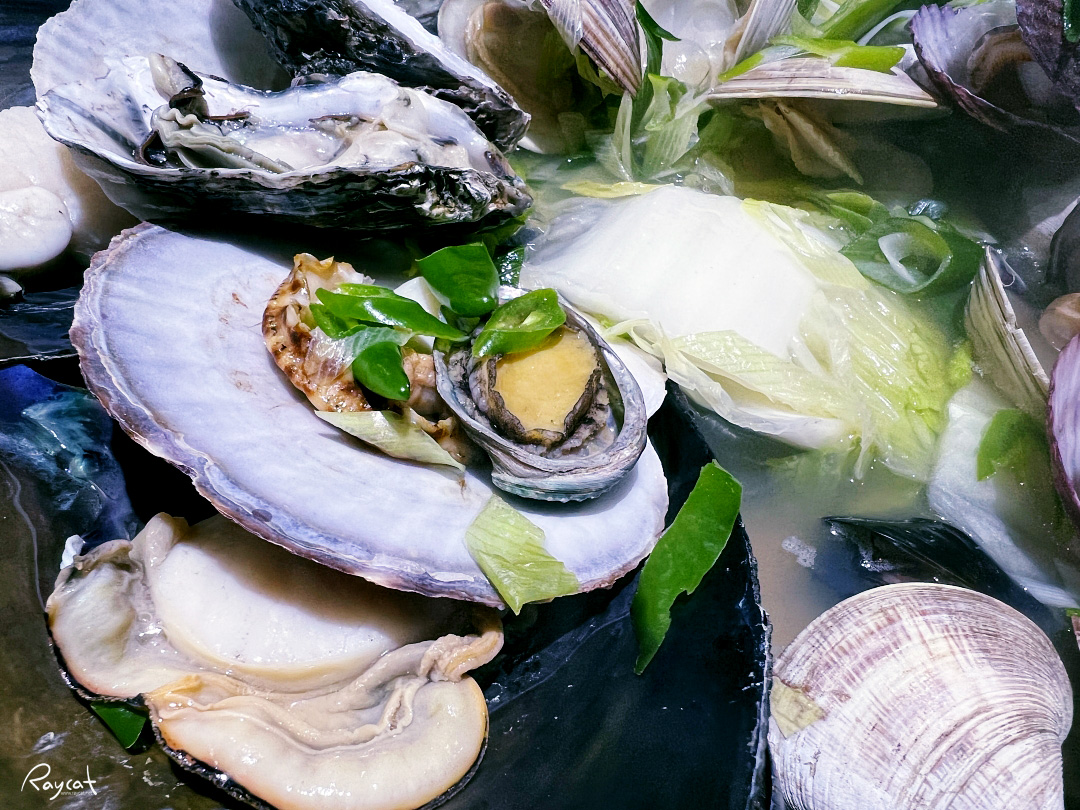 조개전골을 주문하면 커다란 솥에 조개와 다른 해산물이 담겨져 나오는데 이제 삶아지기를 기다리면 됩니다. 사이드 메뉴로 추가할 수 있는 사리가 많아서 조개전골을 먹다가 만두, 라면, 칼국수, 라면, 매생이등을 추가할 수 있습니다.