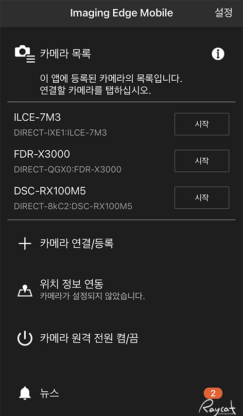 모바일앱 Imaging Edge Mobile과 연결은 NFC, wi-fi로 연결할 수 있으며 한번 연결하면 그 후 카메라 설정에서 네트워크를 켜 두면 계속 연결해 사용할 수 있습니다.