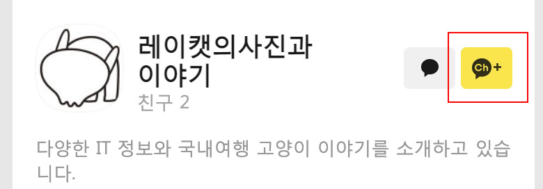 상단에 말풍선+ 표시를 누르면 채널 친구로 등록할 수 있습니다.
