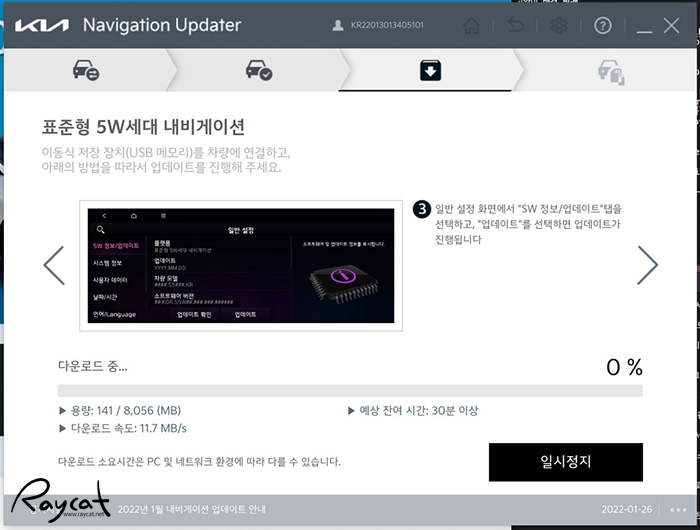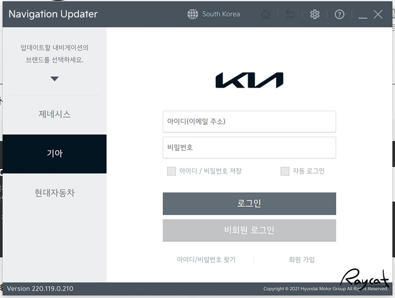 메모리가 준비되면 PC에 연결후 기아커넥트 홈페이지에 접속해 네비게이션 업데이트 애플리케이션을 다운로드합니다. 맥과 윈도용 모두 제공하고 있으며 회원 가입하지 않아도 다운로드가 가능하며 네비게이션 업데이트는 비회원으로 로그인 다운로드할 수 있습니다.