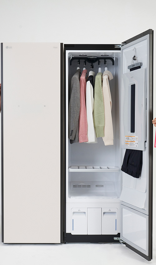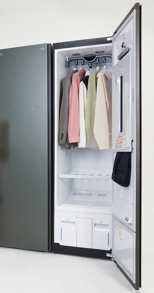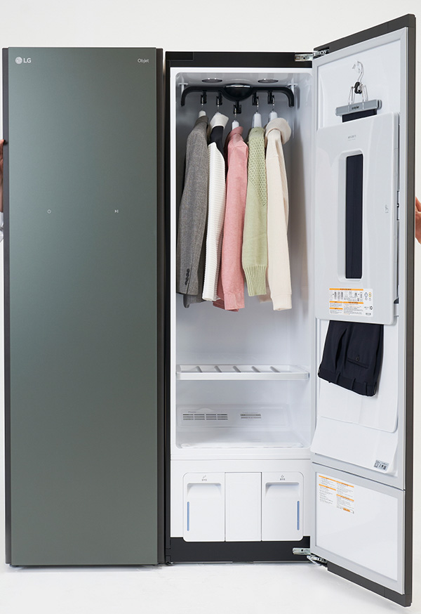 차세대 스타일러의 가장 큰 차별점은 공간 인테리어 가전 제품의 디자인과 물을 끓여 스팀을 만드는 히터(Heater)를 2개로 늘려 옷의 재질에 따라 스팀의 양 최적 조절하며 캐시미어·실크 의류 등 섬세한 관리가 가능합니다.