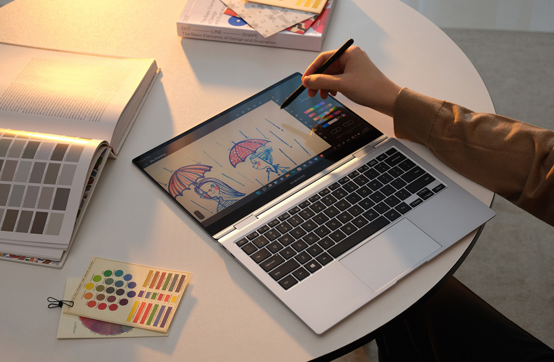 무게와 얇은 두께로 휴대성이 좋으며 S펜으로 생산성을 향상하고 있으며 태블릿 모드로 사용하거나 일반 노트북처럼 사용할 수 있습니다.
