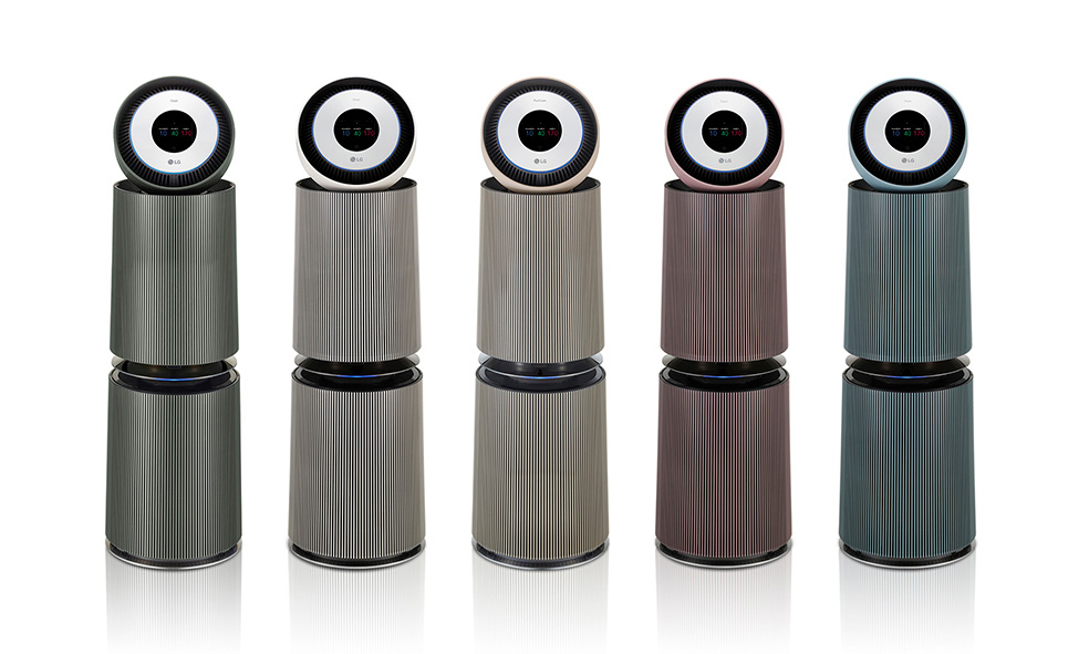 먼저 'LG 퓨리케어 360 공기청정기 알파'를 보면 기존 퓨리케어 360과 디자인은 비슷하지만 오브제 컬렉션 컬러가 적용된 것을 알 수 있습니다. 요즘 가전제품에도 다양한 컬러가 적용되고 있음을 볼 수 있습니다.