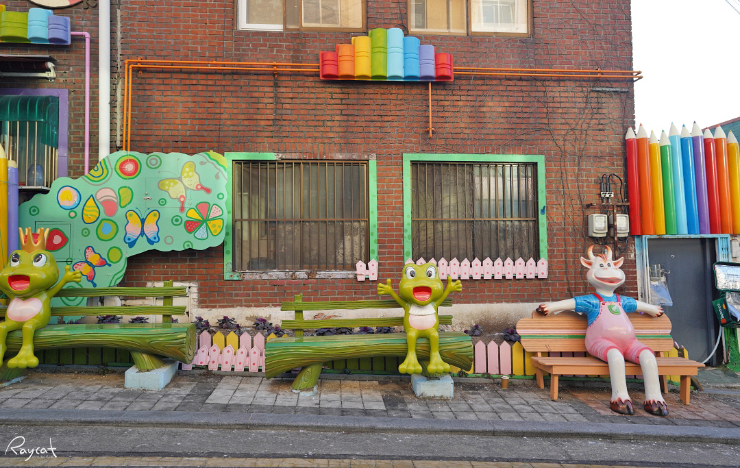 송월동 동화마을은 역사가 꽤 오래된 마을이라 사실 이곳의 집들은 대부분 저층의 낡은 집이 많은데 이렇게 조형물과 벽화를 매년 덧대어 칠을 하고 보수를 하니 동네 분위기 자체가 많이 달라져 지금은 좀 힙한 곳이 되었습니다.
