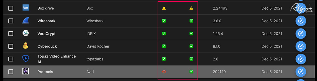 앱 이름을 검색해 보면 바로 사용하는 앱이 맥 M1 칩을 지원하는지 로제타2로만 작동하는지 볼 수 있으며 일부 충돌이 있는지 확인해 볼 수 있습니다.
