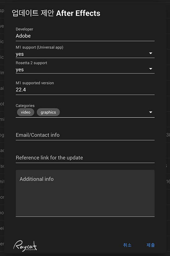애플리케이션 옆에 위 캡쳐 이미지와 같이 표시되어 구분이 쉽게 됩니다. 그리고 본인이 사용하는 애플 M1과 호환되는 버전이 업데이트 되었다면 직접 입력할 수 있습니다.