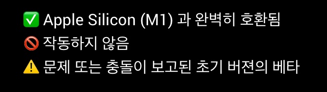 애플 M1 칩을 탑재한 맥 시리즈가 나온지 1년이 지났지만 아직 맥용 애플리케이션의 경우 M1 칩과 호환이 되지 않는 경우도 꽤 있습니다.