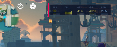 그리고 10분 뒤에 온도가 게임 프레임은 30 프레임을 유지하고 있지만 온도가 40도로 올라갑니다. 10분 뒤에 온도만 올라가고 램 사용률은 20%로 비슷한 수준입니다.