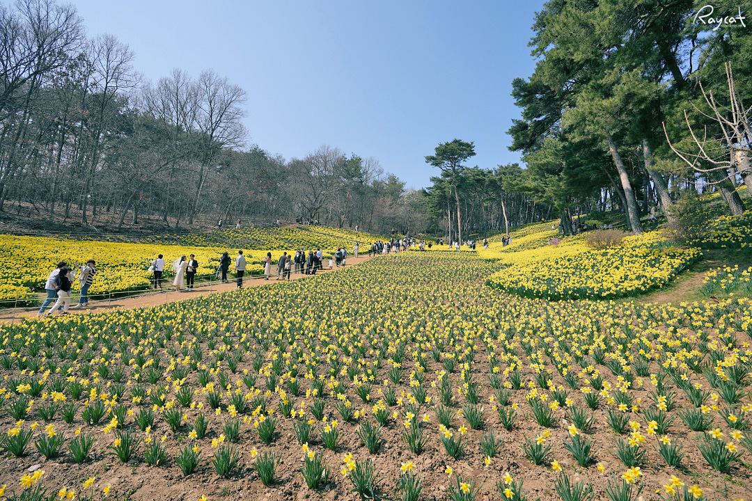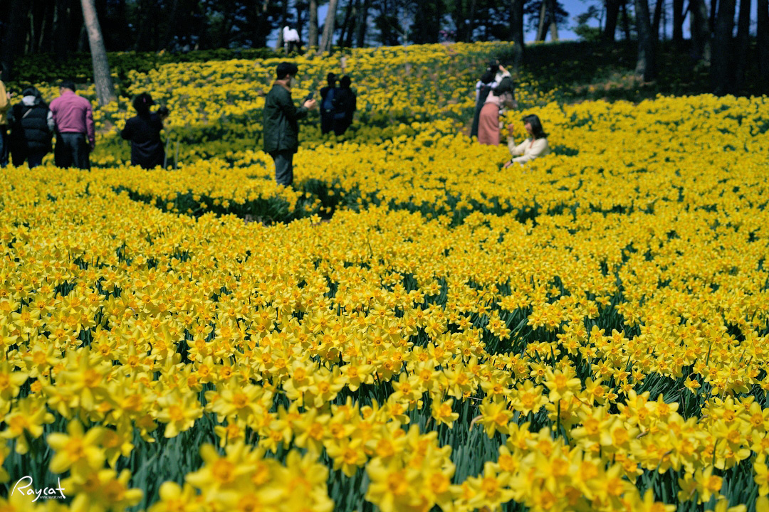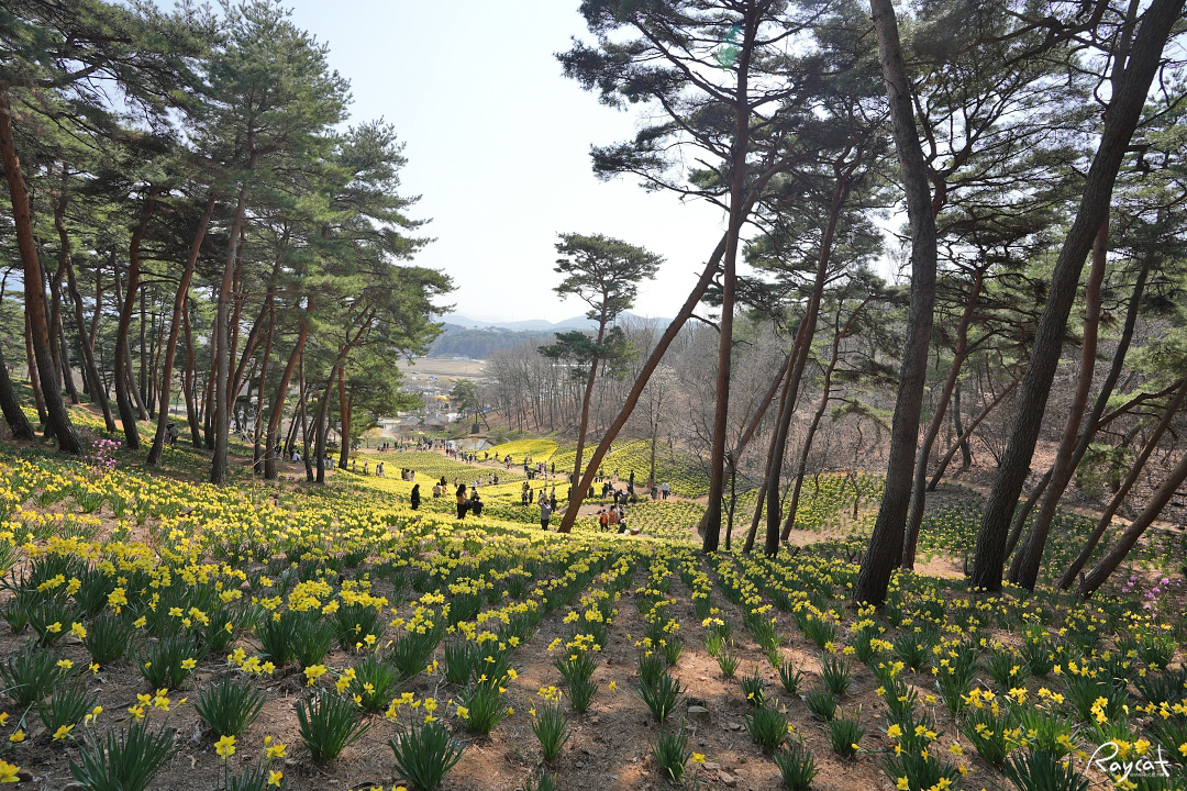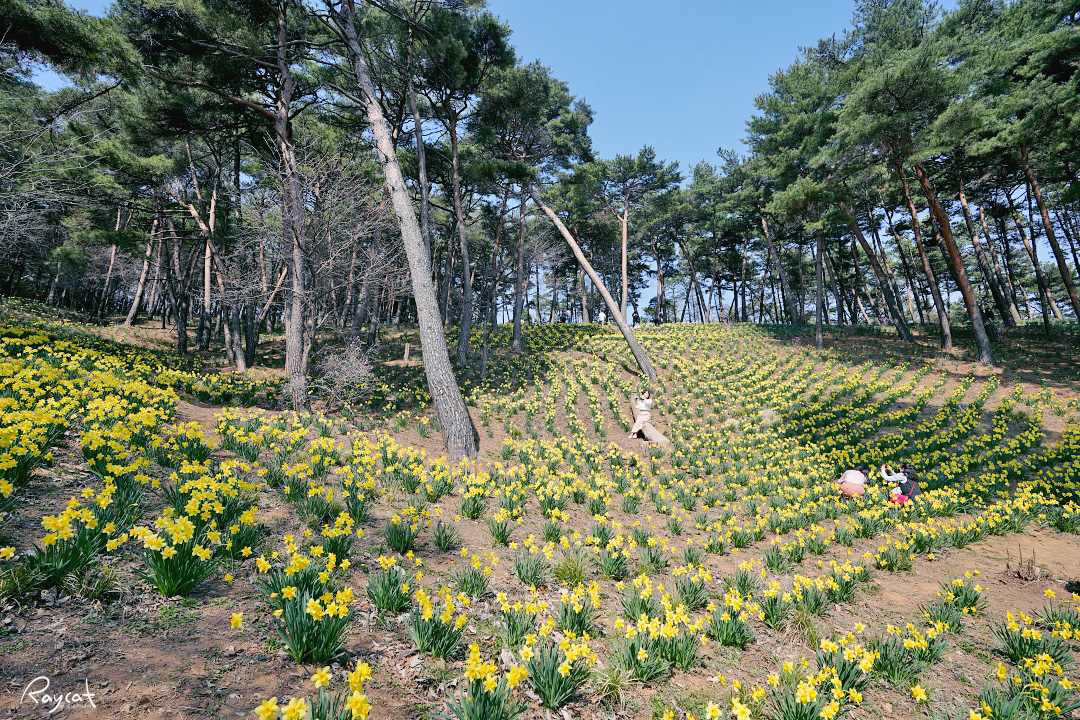 수선화가 활짝 핀 군락지 사이로 사진을 찍는 포토존이 있어서 이 시기면 포토존마다 줄을 서서 기다리는 사람을 볼 수 있는 진풍경까지 벌어진다. 이때가 아니면 볼 수 없는 풍경이기도 하다.