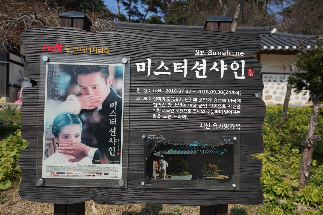 매표소를 지나 들어가면 바로 옛 가옥 카페가 있는데 이곳에 보면 '미스터 선샤인' 촬영이 있었던 곳이라는 팻말이 붙어있다.