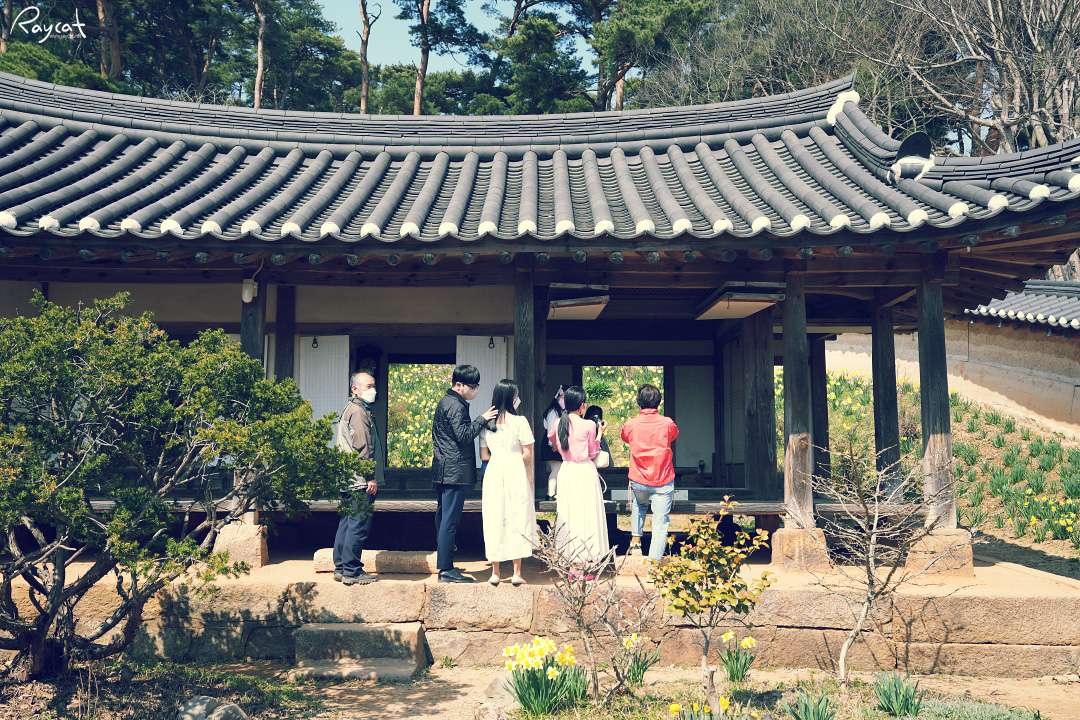 수선화가 피는 시기가 아니면 원래 드라마 촬영지였던 유기방 가옥이 더 유명하지만 지금은 수선화가 한참 개화하는 시기라 드라마 촬영지였던 유기방 가옥보다 이 가옥을 둘러싸고 있는 수선화 군락지가 더 붐비고 있다.