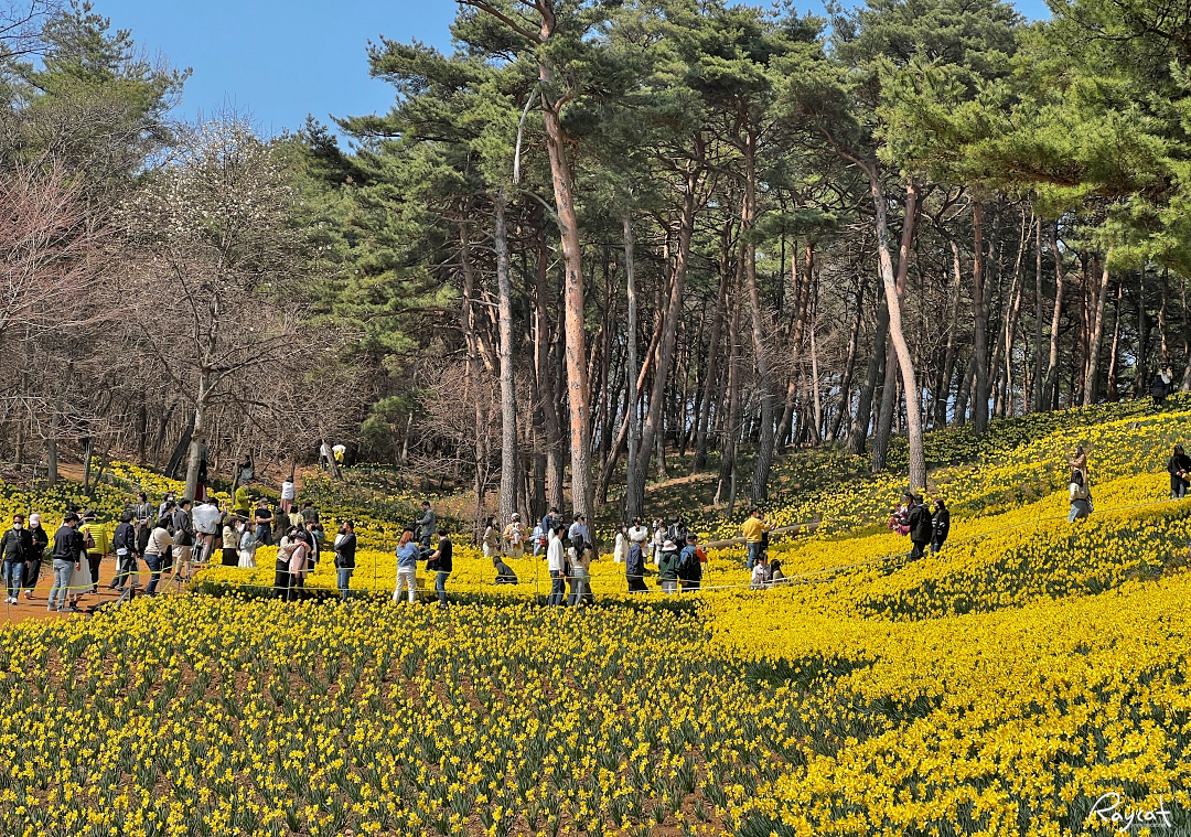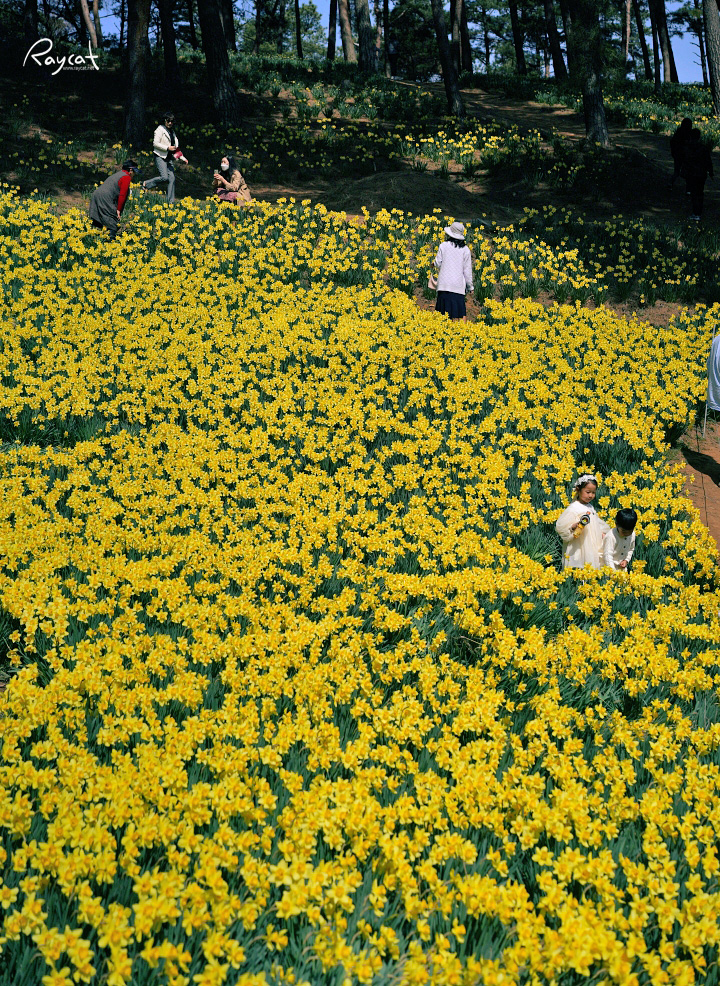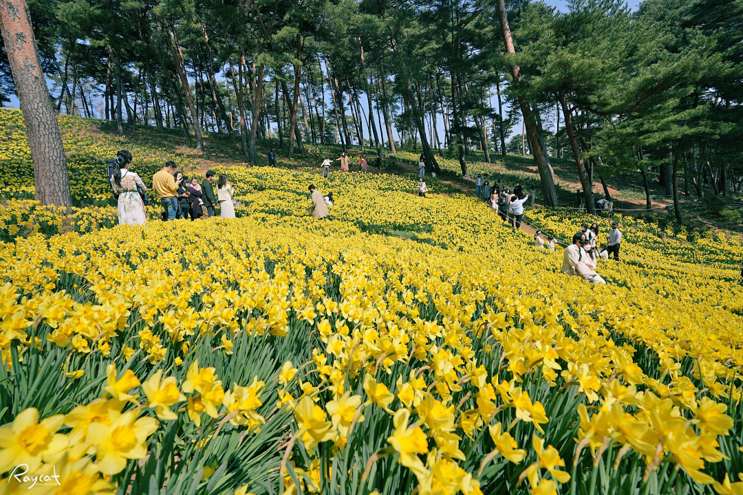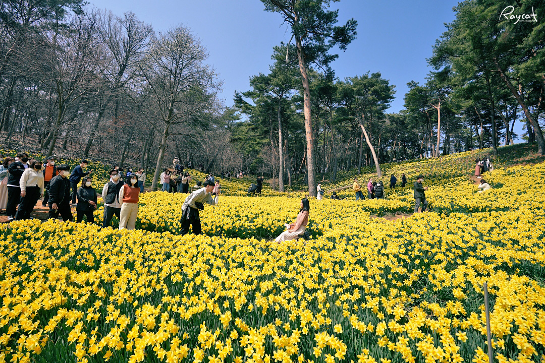 수선화가 활짝 핀 군락지 사이로 사진을 찍는 포토존이 있어서 이 시기면 포토존마다 줄을 서서 기다리는 사람을 볼 수 있는 진풍경까지 벌어진다. 이때가 아니면 볼 수 없는 풍경이기도 하다.