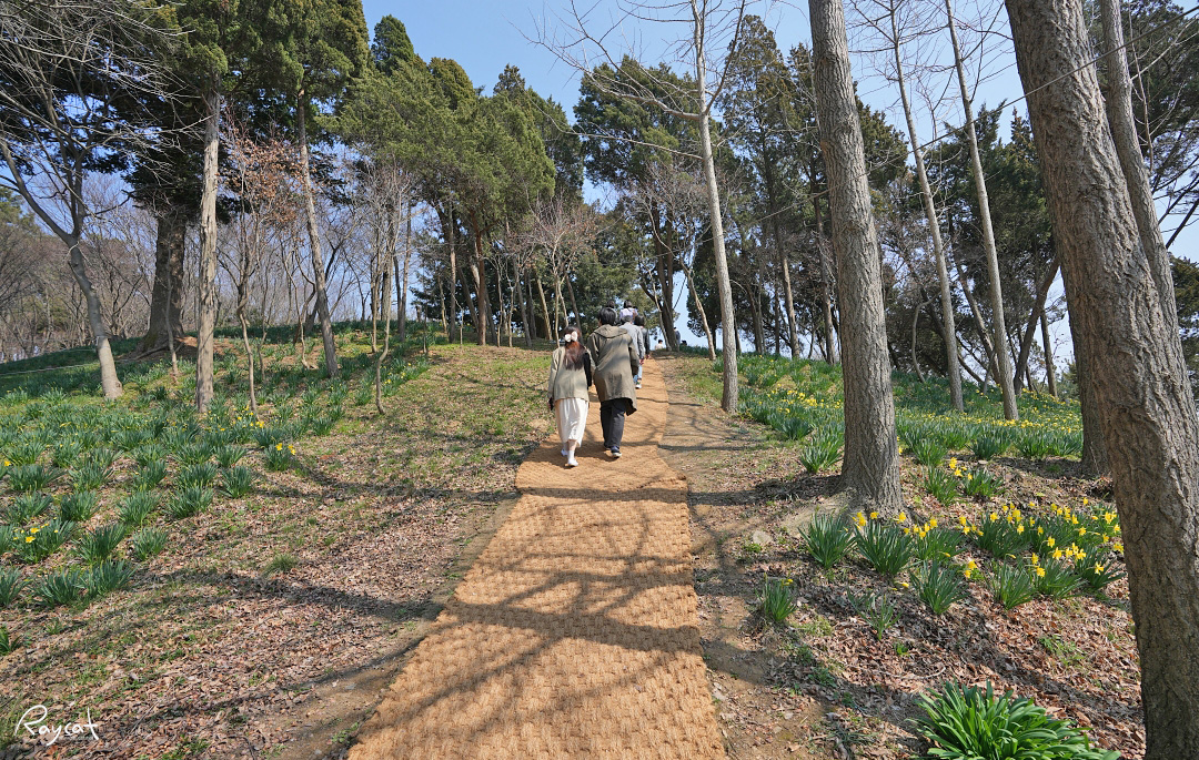 송림 사이로 노랗게 활짝핀 수선화를 보면 기분도 좋아지고 낮은 야산이라 가볍게 산책하기 편한 곳이다.