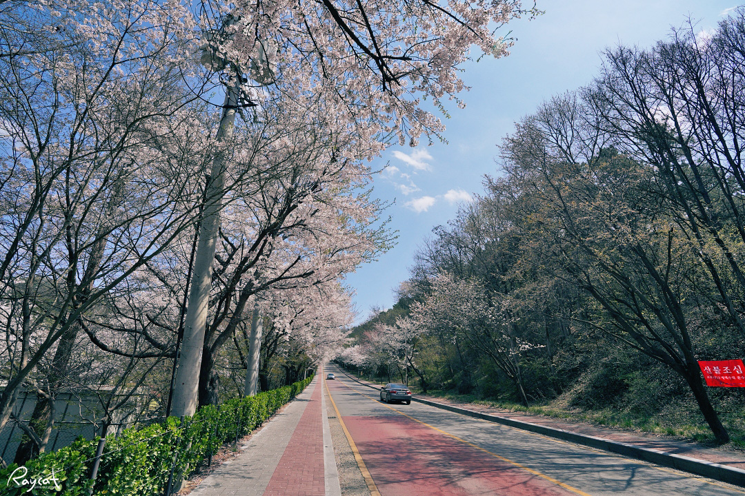 신정호를 들어오는 터널 입구부터 시작해서 양옆으로 벚꽃이 만발해 창을 열고 달리고 싶은 도로다.