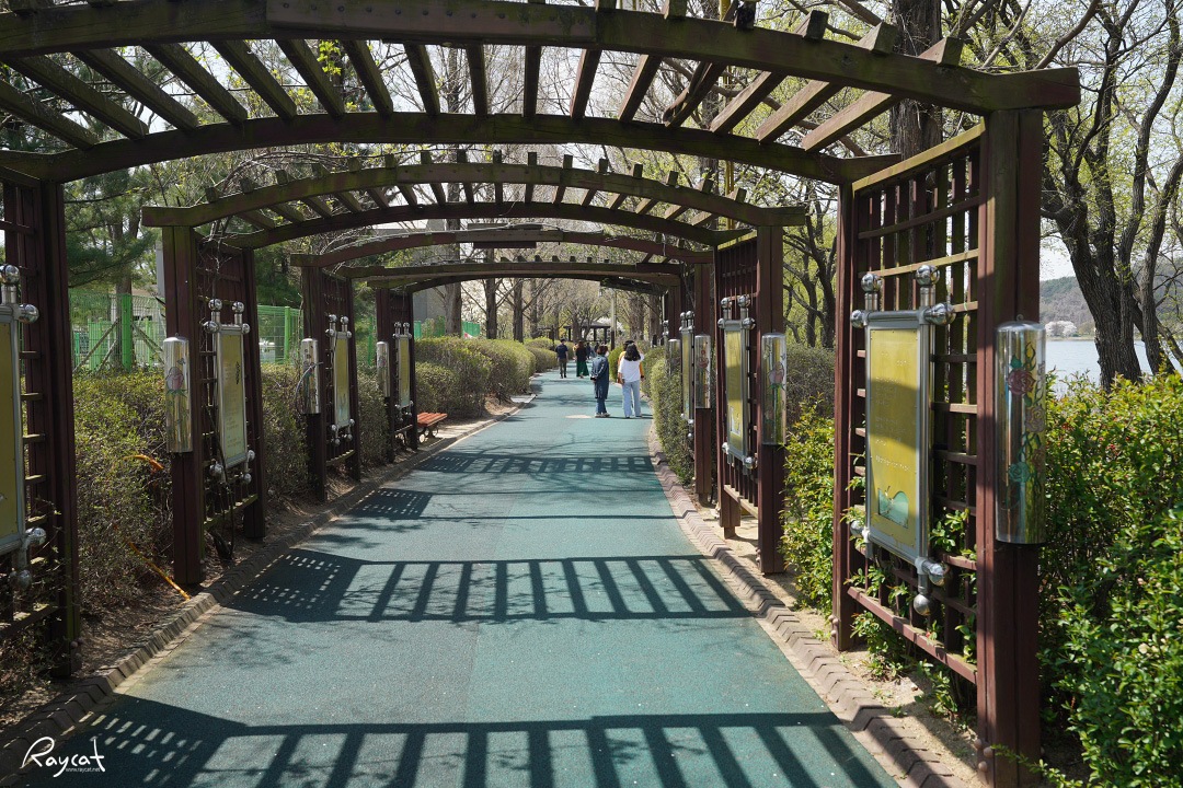 목련이나 산수유 같은 나무를 볼 수 있는데 여름은 그늘이 많아서 호수에 핀 연꽃을 보며 거닐기 좋지만 봄은 호수안 산책로보다 호수를 둘러싸고 있는 도로의 가로수가 벚나무라 봄이면 제대로 벚꽃놀이를 할 수 있다.