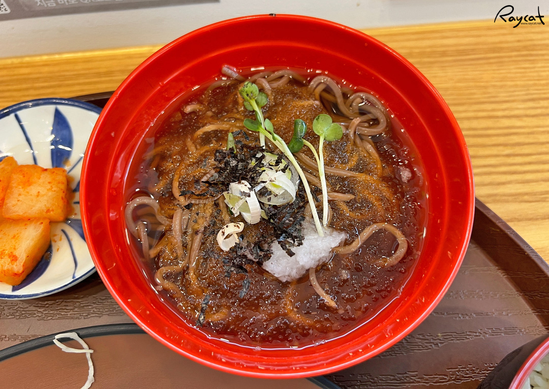 기본 돈가스 주문 시 소바와 우동을 선택할 수 있는데 전 시원한 국물이 먹고 싶어서 소바를 선택했습니다. 밥은 양이 적지만 셀프바에서 더 먹을 수 있습니다.