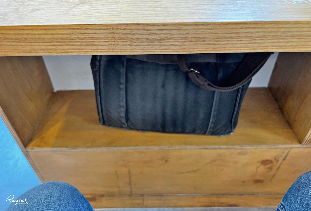 테이블 아래에 가방을 놓을수 있는 공간이 따로 있어서 1인 테이블이라도 혼자서 여유 있게 먹을 수 있는 공간입니다.