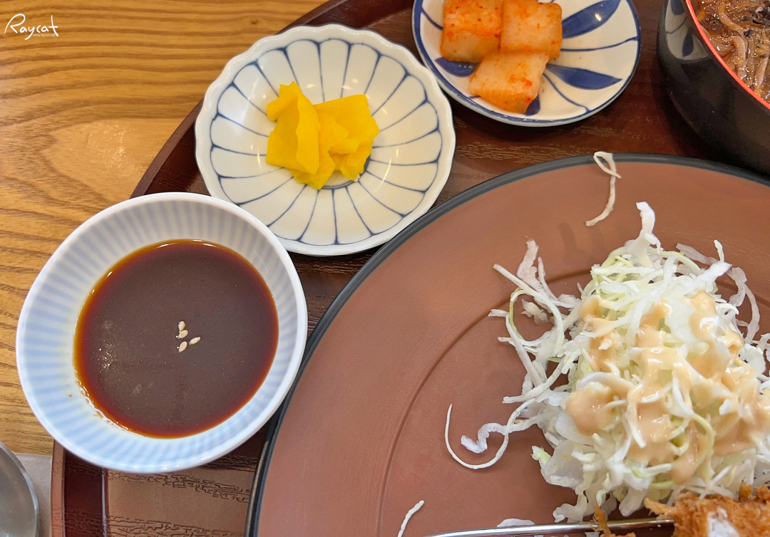돈가스 소스는 일본식 소스의 느낌이고 샐러드에 유자 소스는 새콤달콤해서 셀프바에서 좀 더 소스를 가져와 먹었습니다.