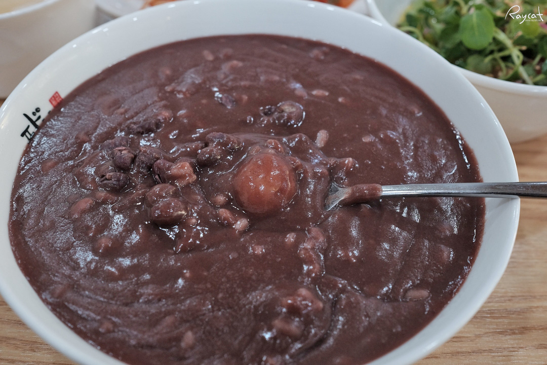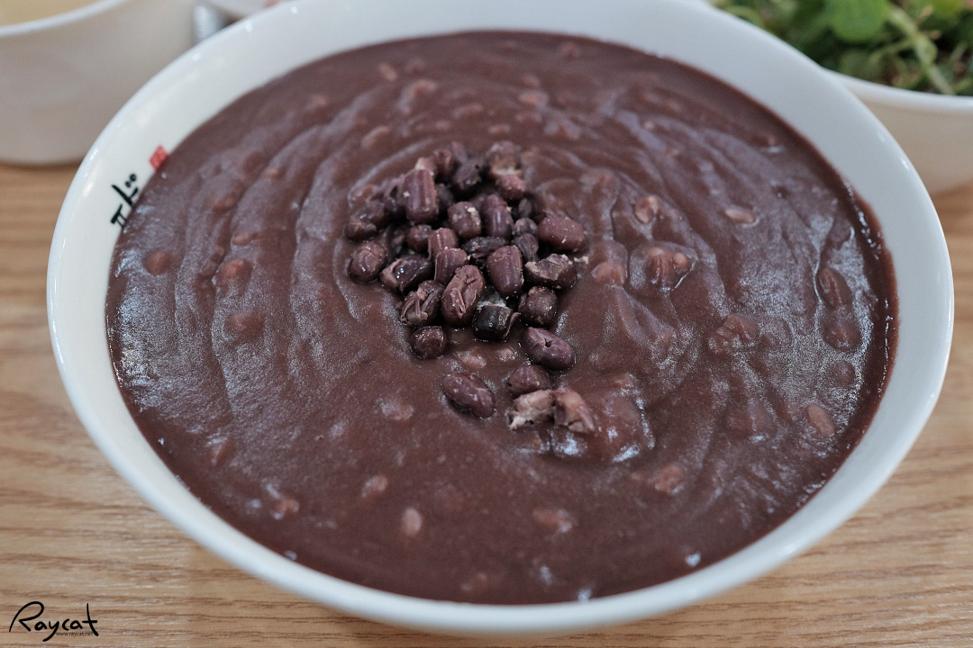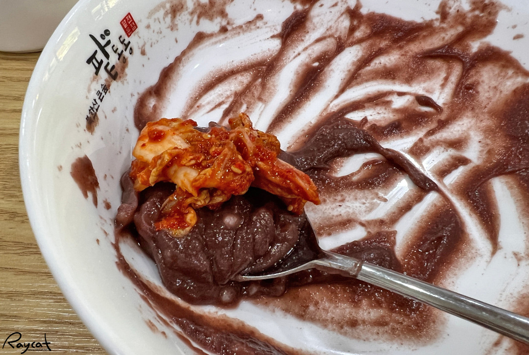팥 자체의 진한맛이 느껴지는데 소금을 조금 넣어서 먹으면 밑간이 되며 더 맛있다. 팥 자체가 달콤한 맛이 있어서 소금간이 좀 더 맞는 것 같은데 진한 팥물과 함께 떠먹다 보면 잘 들어간다.