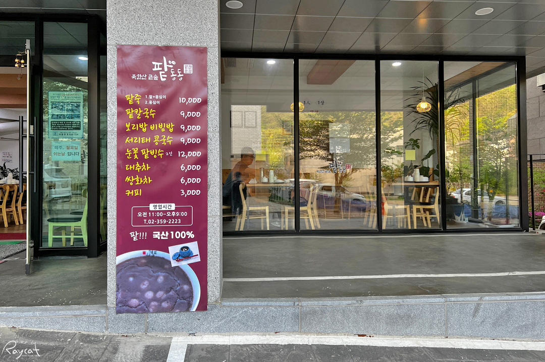 팥죽은 정말 동지나 겨울이 되면 어쩌다 먹는 음식이지만 어쩌다 가끔 생각날 때도 있고 어쩌다 이 동네를 지나게 되면 한 번씩 찾아가서 먹는다. 은평한옥마을을 지나 은평 뉴타운 쪽으로 가다 보면 터널 입구에 있는 작은 상가 1층에 위치한 팥동동은 주메뉴가 팥죽으로 팥죽 전문점이기도 하다.
