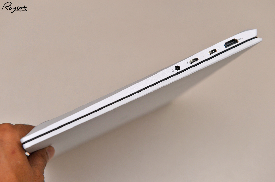 왼쪽에는 오디오 잭, usb-c 포트와 썬더볼트, hdmi 포트가 있는데 usb-c 포트 하나는 전원 포트로 다른 하나는 뷰와 연결하기 위해 사용하는 포트이기도 합니다. 사용해보면 확장 포트는 넉넉하다고 느껴집니다.