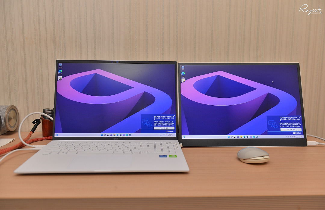 일반 PC에서 듀얼 모니터를 띄워두고 작업하는 것과 같은 방법으로 활용하기 좋으며 휴대할 수 있다는 장점이 있어 흔히 요즘 카페에서 작업하시는 분은 더 편하게 사용할 수 있을 것 같습니다. 2022 그램과 뷰는 좀 더 사용해보고 상세한 후기를 남겨 보겠습니다.