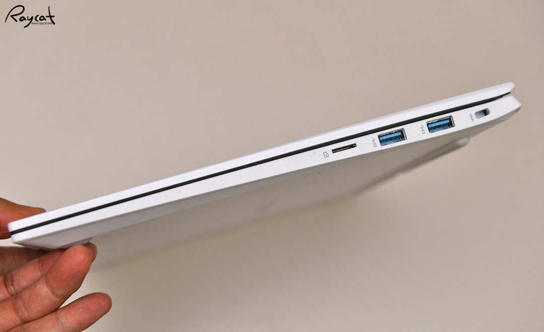우측에 micro sd 슬롯, USB-A *2, 도난방지를 위한 켄싱턴락이 있습니다.