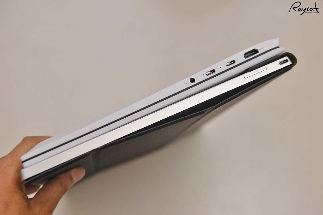 아무래도 노트북 두께에 뷰 역시 폴리오 커버를 씌워서 가지고 다녀야 하기 때문에 무게 부담도 늘어나지만 부피도 늘어나게 됩니다.