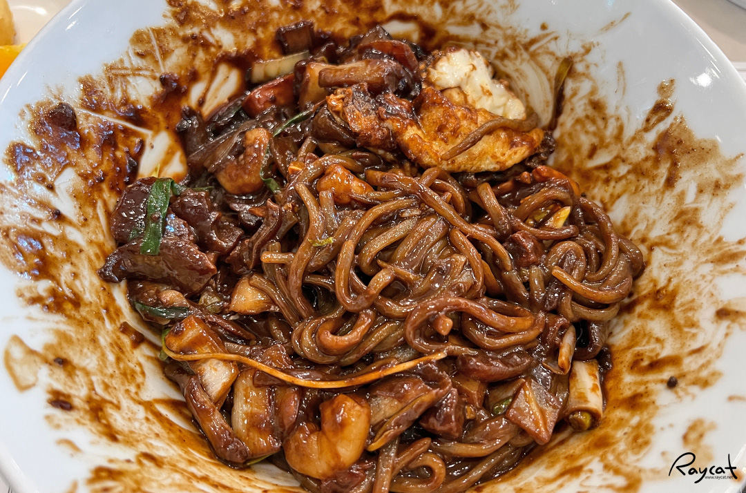 보통 짜장면에 쓰는 면이 아닌 이 집은 흑미면을 사용하고 있다. 그래서 면이 메밀면을 생각나게 하는 색깔인데 메밀과 식감과 맛이 다르다.