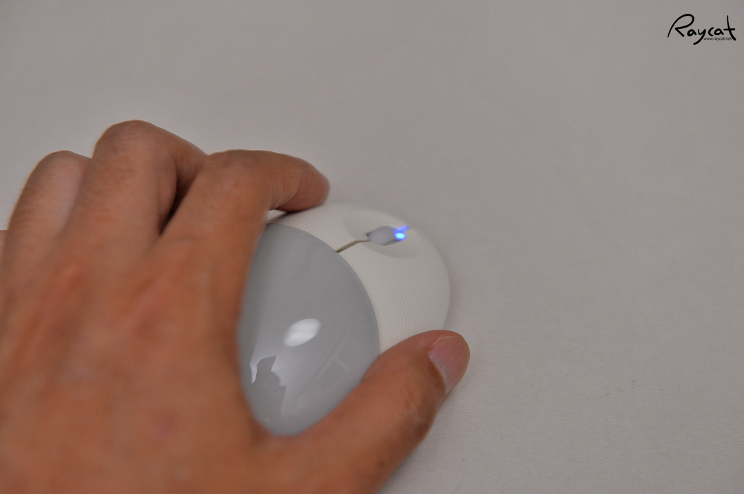 뚜껑이 덮혀 있을때는 조약돌 같은 느낌으로 손안에 쏙 들어오는 크기로 앙증맞은 느낌인데 뚜껑을 당기면 전원이 켜지며 길이가 늘어나며 일반 마우스와 조금 비슷한 크기가 됩니다.