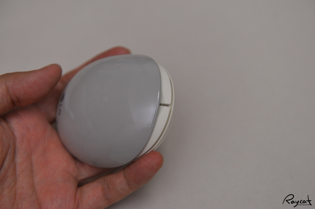 뚜껑이 덮혀 있을때는 조약돌 같은 느낌으로 손안에 쏙 들어오는 크기로 앙증맞은 느낌인데 뚜껑을 당기면 전원이 켜지며 길이가 늘어나며 일반 마우스와 조금 비슷한 크기가 됩니다.