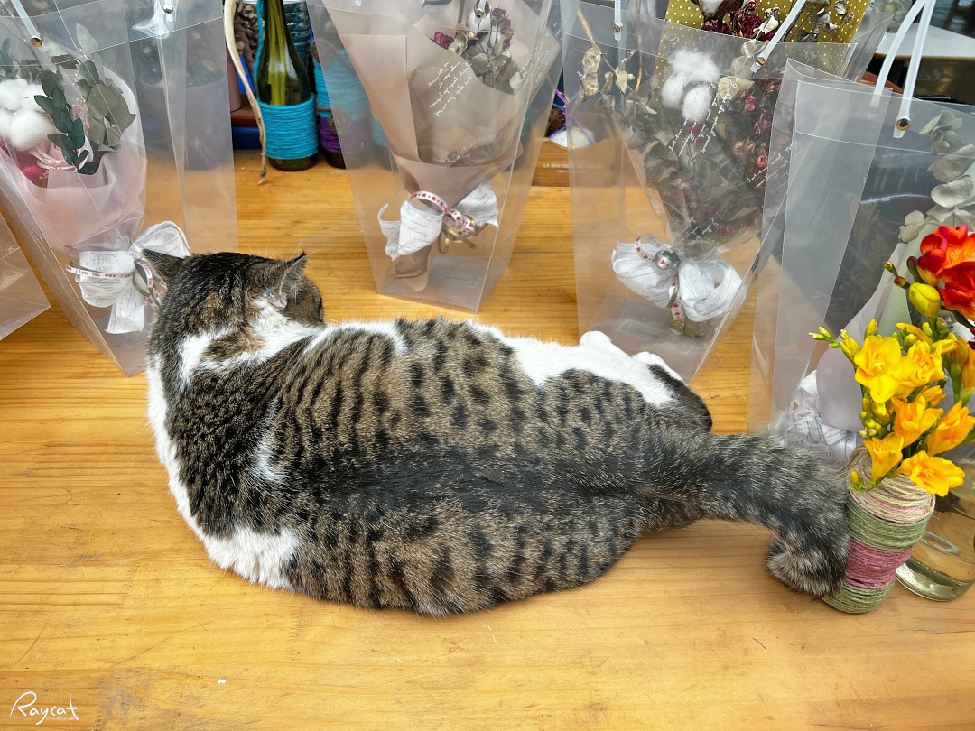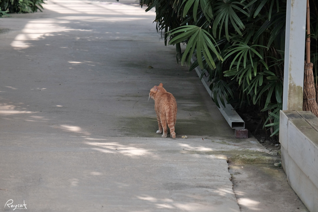 열대식물부터 다양한 꽃들이 항상 피어 있는데 오늘은 고양이가 마중을 나왔다.