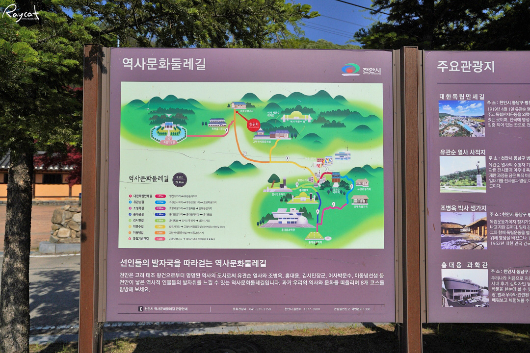 천안 독립 기념관을 중심으로 만들어진 역사문화 둘레길은 독립기념관 인근에 있는 유관순열사 생가부터 석오 이동녕 선생의 생가까지 대한민국의 독립운동의 역사를 보여주는 둘레길이기도 하다.