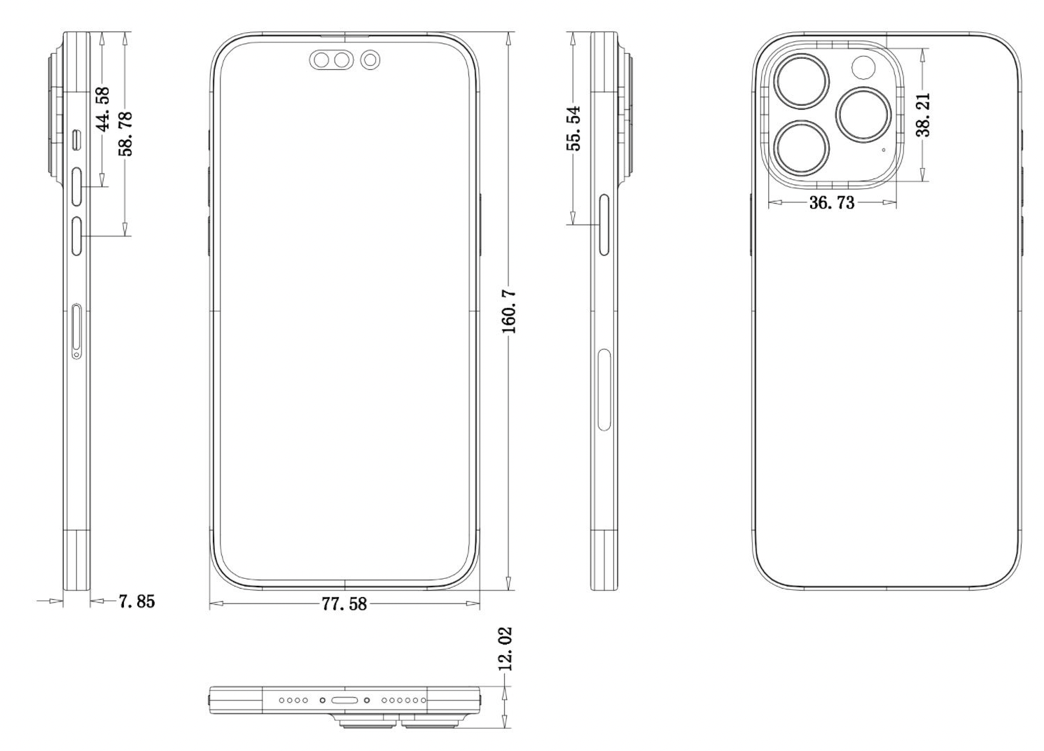 카메라 부분의 면적이 더 넓어진 것을 제외하며 기본 사이즈는 아이폰 13 시리즈와 비교해 큰 차이가 나는 것은 아닙니다.