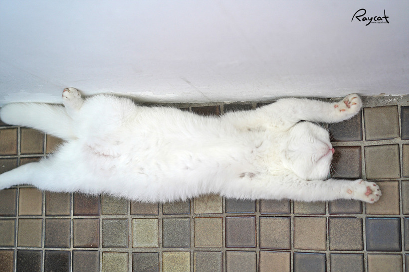 여름의 경우 사람과 함께 생활하는 고양이의 경우 여름은 에어컨이 돌아갈 때와 아닐 때 잠자리가 달라진다. 에어컨이 꺼져있으면 타일 바닥이나 시원한 대리석 바닥을 찾아가 위 사진처럼 정말 큰 대자로 뻗어잔다.