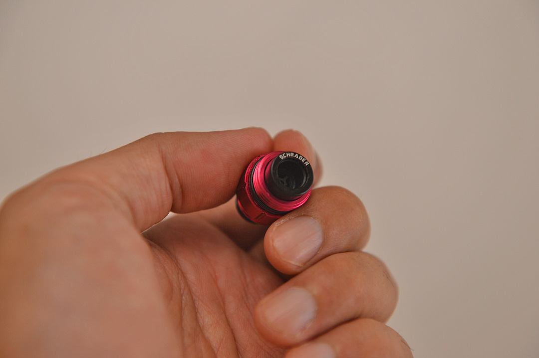 밸브 앞쪽에 먼지 유입을 막는 마개가 있으며 밸브를 빼서 반대로 결합하면 슈레이더 방식으로 바뀌고 기본은 던롭, 프레스타 방식으로 되어 있으니 저처럼 슈레이더 타입이면 밸브를 빼서 반대로 끼워주면 됩니다.