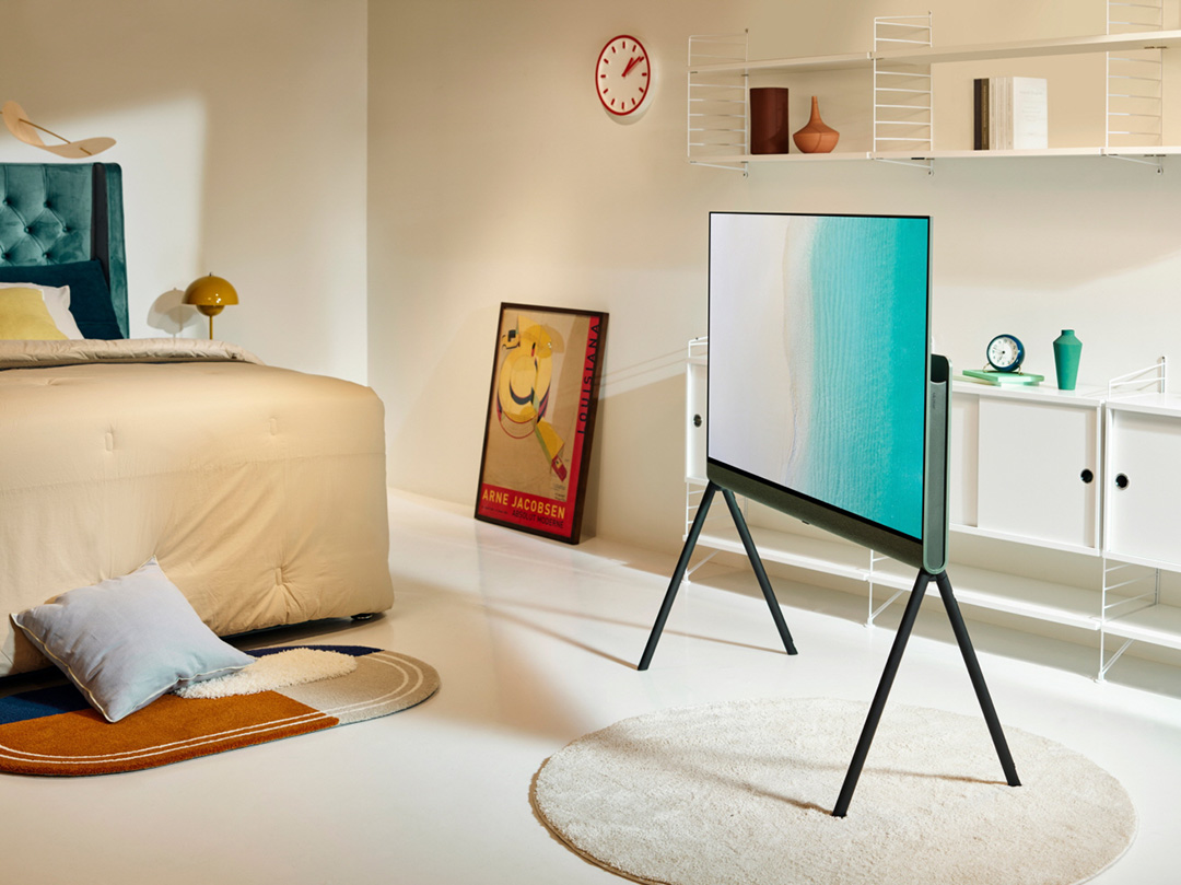 이번에 출시한 LG 올레드 오브제컬렉션 포제의 경우 TV를 스탠드에 세워서 사용하며 뒤쪽을 깔끔하게 보이도록 인테리어 가구처럼 보이도록 디자인한 TV입니다.