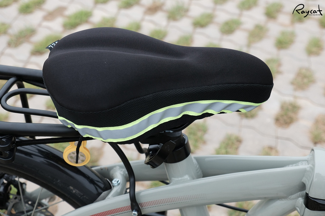 구조는 간단한데 위쪽은 푹신푹신한 쿠션이 그리고 아래쪽에 반사 야광띠가 있어서 야간에 라이딩시 빛을 받으면 반사되어 반짝반짝 빛나 보입니다.