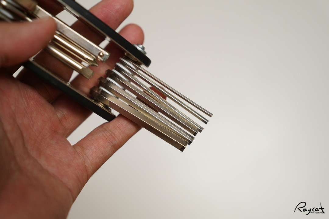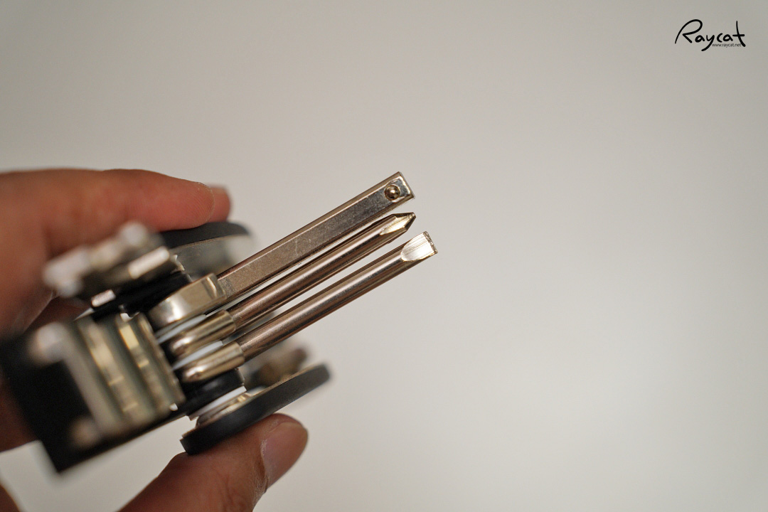 십자와 일자 드라이브 그리고 렌치까지 작지만 자전거에 필요한 공구는 다 있는 것 같습니다. 단 렌치의 경우 일부 자전거는 사이즈가 맞지 않을 수 있습니다.
