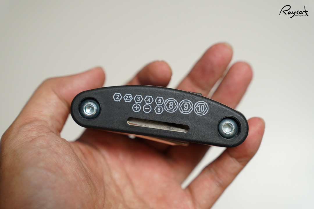 10mm, 16mm, 8mm 3종의 볼트를 풀고 조일수 있는 스패너까지 생각했던 것보다 공구툴의 종류도 많고 꽤 단단해서 내구성도 괜찮은 것 같습니다. 크기도 주머니에 쏙 넣을 수 있는 크기라 휴대하고 다니며 사용하기 꽤 편리한 공구툴인것 같습니다.