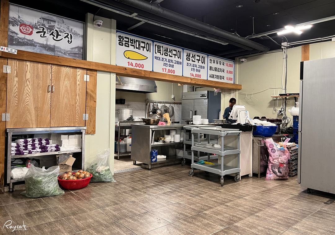 내부는 깔끔하고 일반 식당과 비슷한데 홀에 손님이 많아서 사진을 찍지는 않았다. 이 집의 주메뉴는 주로 생선구이란 느낌인데 황금박대구이 정식이 14,000원이다. 황금박대구이가 저렴한 가격은 아닌데 대신 반찬과 밥, 숭늉이 무한리필이다.