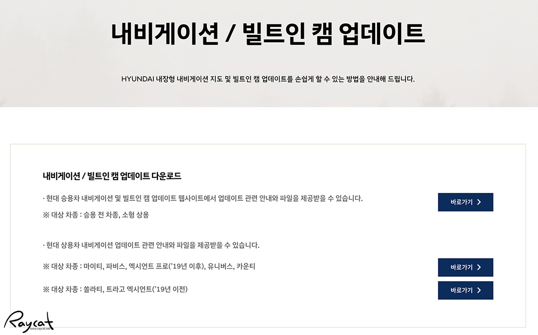 현대자동차 홈페이지에 접속하면 멤버십&차량관리 메뉴가 있습니다. 여기서 차량관리 서비스를 선택하면 내비게이션/빌트인 캠 업데이트가 있습니다. 참고로 등록한 차량 보증수리도 이곳에서 조회할 수 있습니다.