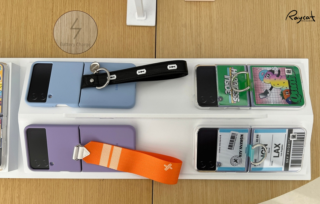이번에도 갤럭시 Z 플립4 케이스도 함께 많이 전시되어 있더군요. 개인적으로 갤럭시 Z 플립4는 기본 정품 케이스도 종류별로 다양하게 많이 나오고 있는데 케이스는 폴드 보다 플립 시리즈가 이쁜게 더 많습니다.