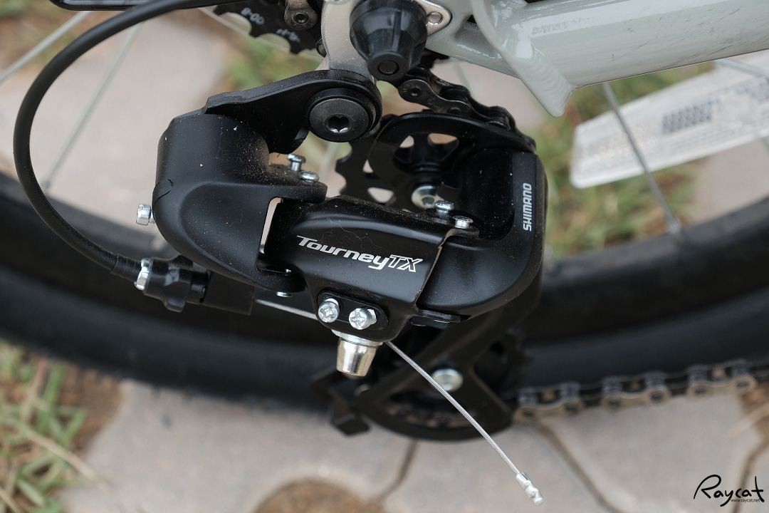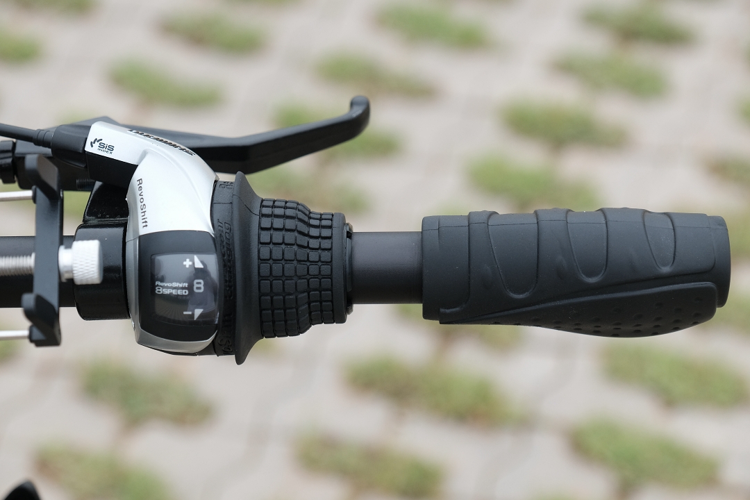 시마노 8단 기어에 기계식 디스크 브레이크 그리고 흙받이가 기본으로 장착되어 있습니다.