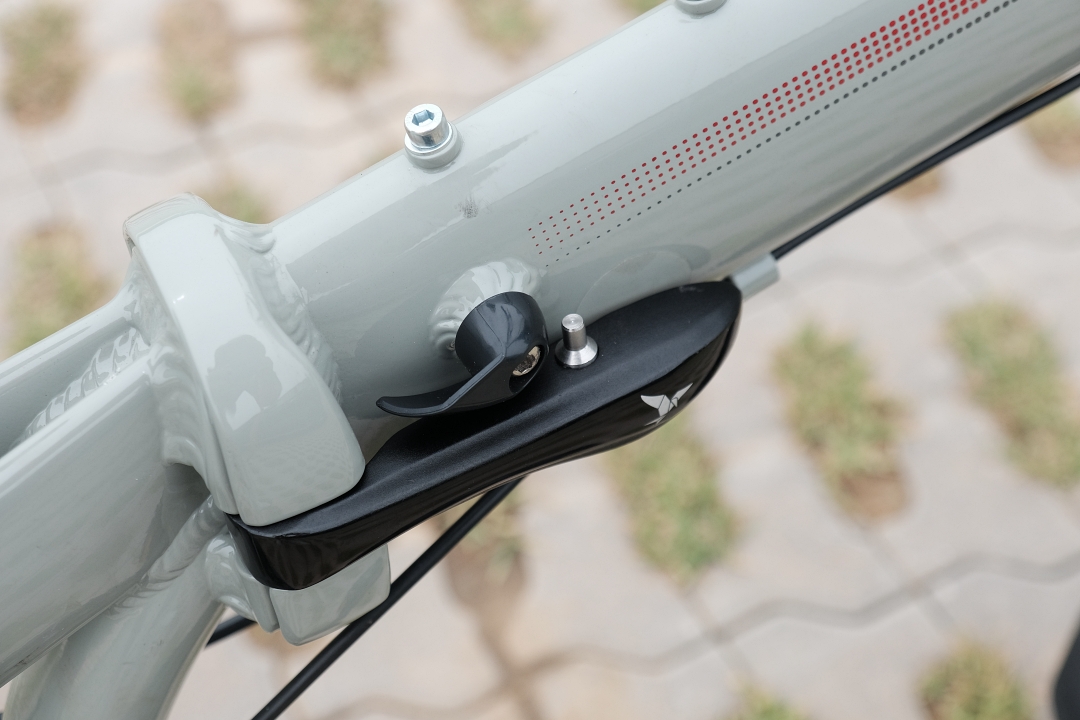 턴 B8의 텔레스코픽 핸들 포스트는 핸들 높낮이나 각도 조절도 쉽고 오른쪽에 기어 조절 레버가 있습니다.